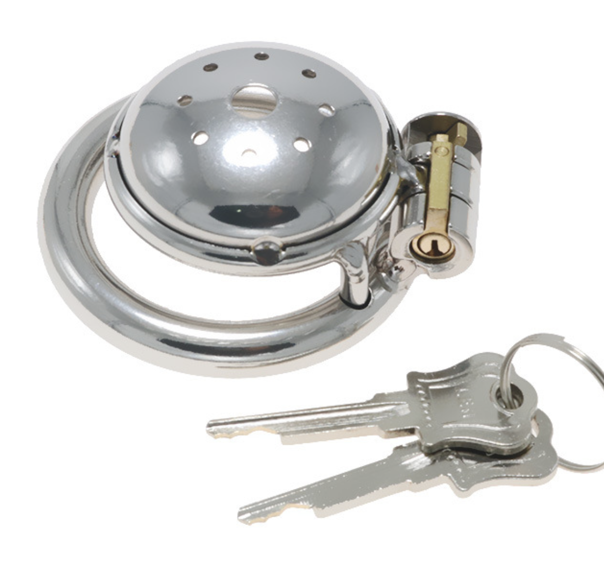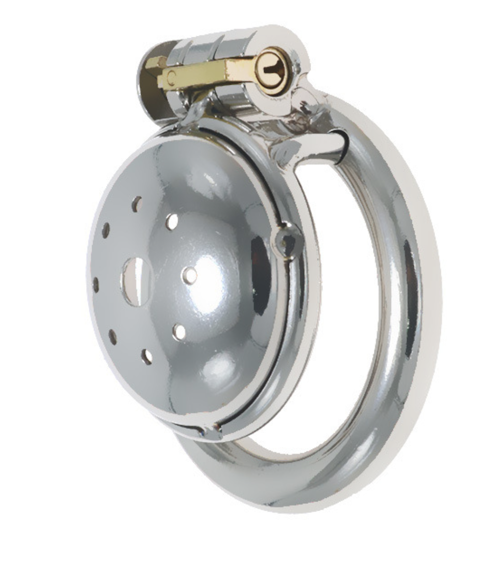 The rounded, ventilated shield allows for airflow and hygiene while maintaining full coverage, and the smooth inner edges are shaped for a comfortable fit during extended wear. A robust locking mechanism ensures reliable security, making this cage well-suited for ongoing chastity play and power exchange dynamics.