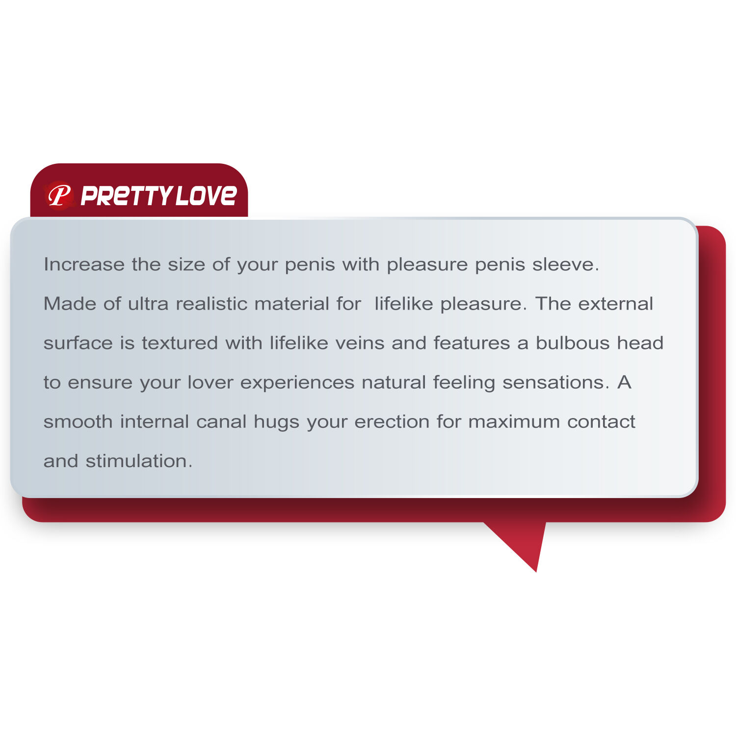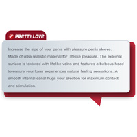 Increase the size of your penis with pleasure penis sleeve. Made of ultra realistic material for lifelike pleasure. The external surface is textured with lifelike veins and features a bulbous head to ensure your lover experiences natural feeling sensations. A smooth internal canal hugs your erection for maximum contact and stimulation.