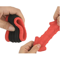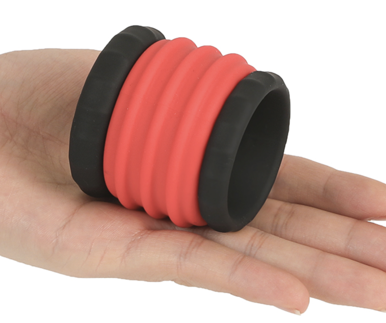 Designed for controlled pressure and enhanced sensation, this ribbed silicone ball stretcher delivers a firm, grounding feel with a clean, modern look. The stacked rib design adds flexibility while maintaining consistent stretch, allowing it to sit securely and comfortably during wear.