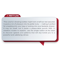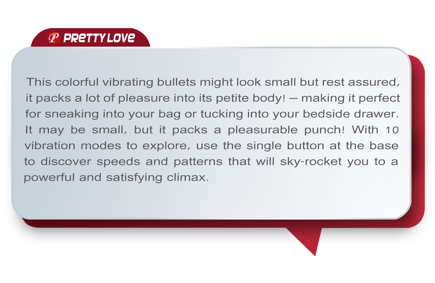 This teeny-tiny vibrating bullet is ultra-compact, perfect for slipping into any bag or pocket and taking on the go with you. It has a single button to control the vibrations for easy operation and a rounded tip to glide over your body's external sweet spots, like the clitoris and nipples for fun. Plus this medium-sized box packaging contains 40 mini bullets.