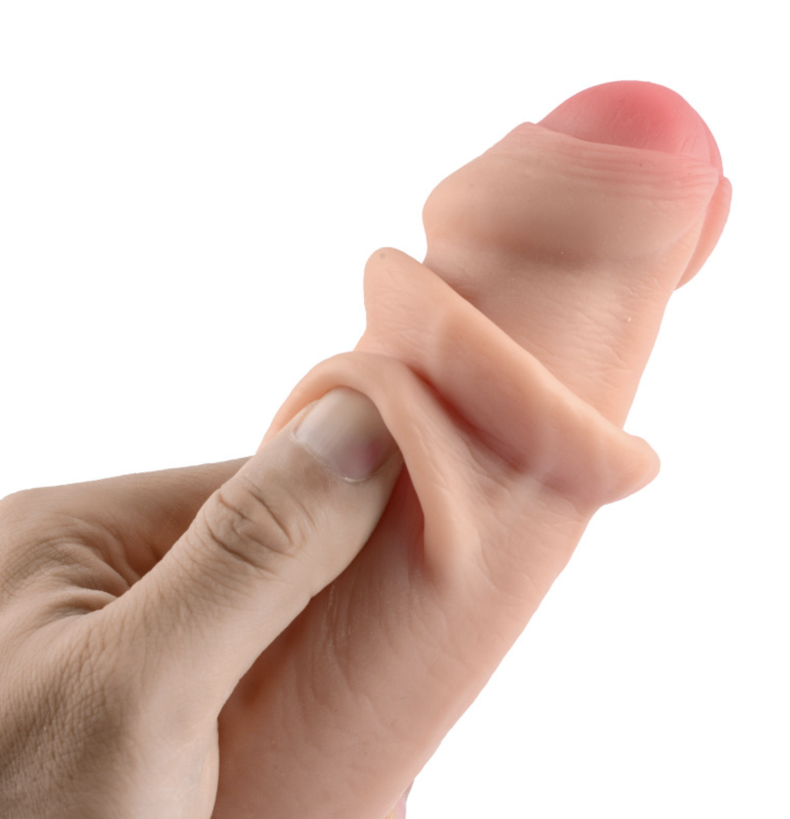 Handcrafted and incredibly realistic, the textured shaft, head, and balls look just like the real thing, with veins and wrinkles exactly where they should be. But this toy’s real showstopper feature is the Flex Skin material that moves up and down as you stroke it.
