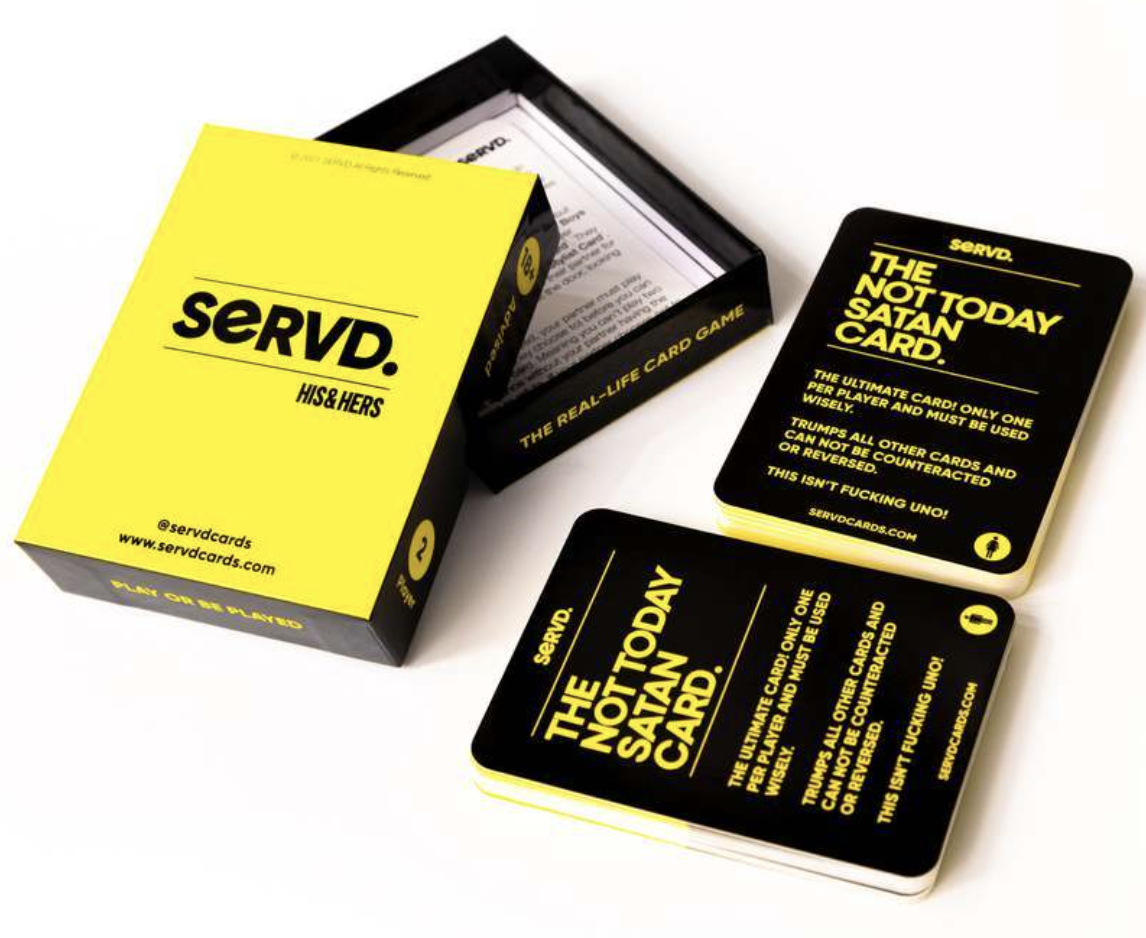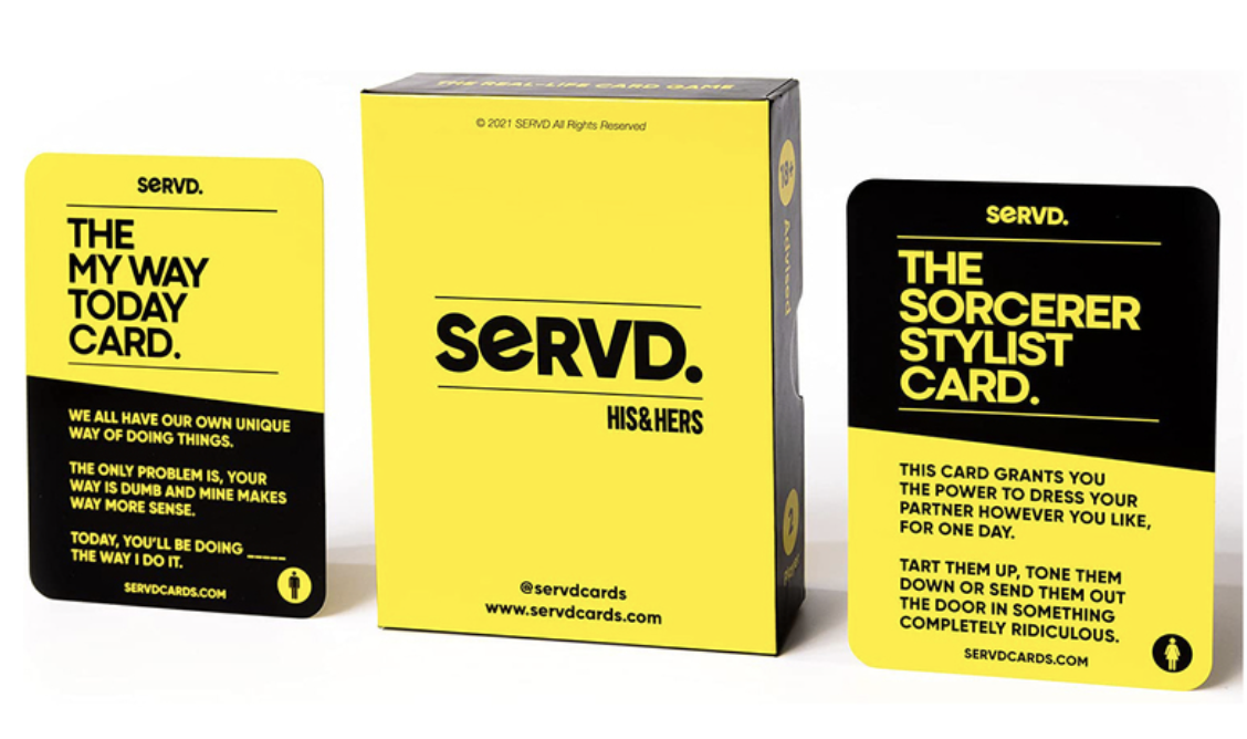 There are five different Servd decks available, each tailored to a specific type of relationship: His & Hers, His & His, Hers & Hers, BFFs and Bros. Pick your poison, split the deck and game that relationship.
