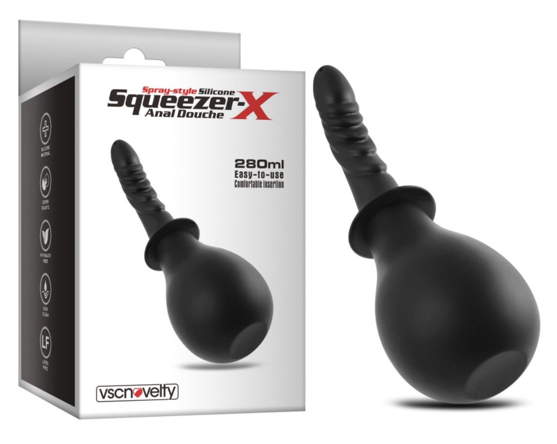 SQUEEZER X SPRAY STYLE SILICONE ANAL DOUCHE 280ml (RIBBED NOZZLE)